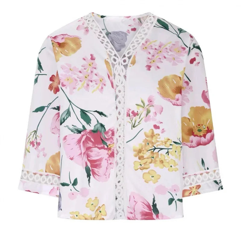 Boho Floral V Neck Top Half Sleeves Lace Details Multi Color Options for Beach Days Music Festivals Trendy Outfits