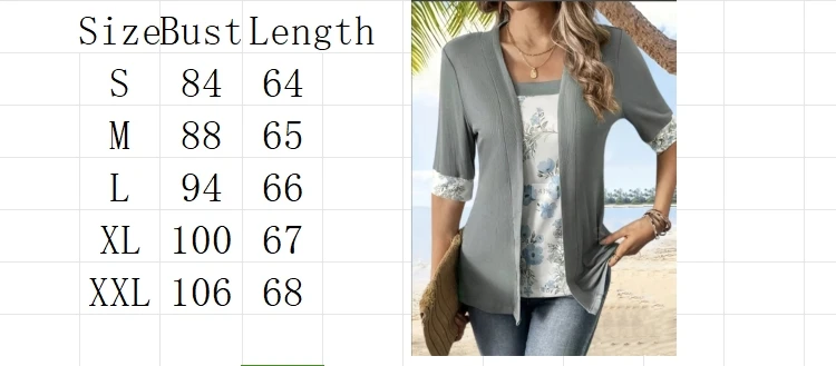 Casual Commuting Style Summer Top Women Print Splicing Solid Color Square Collar Fake Two-piece Set Short Sleeve T-shirt