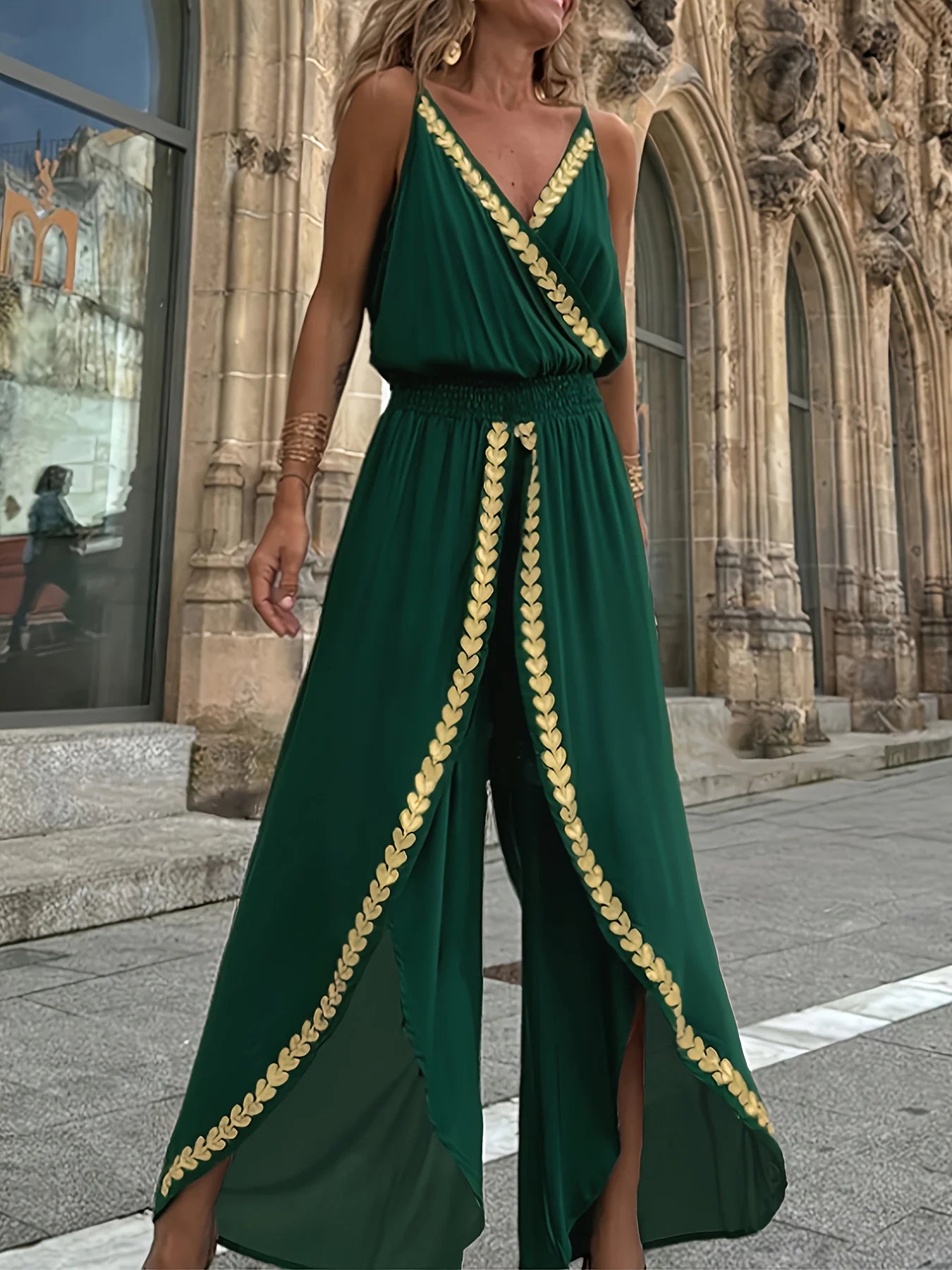 Women's Purple Jumpsuit Trimmed Wrap V-Neck High Waist Split Legs Ideal for Beach Vacations Evening Strolls Bohemian Styles